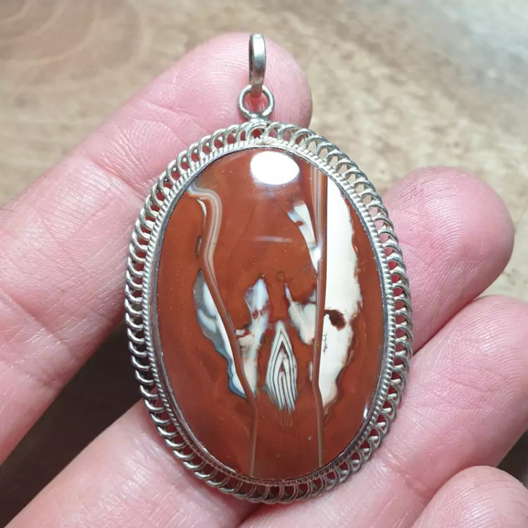 آویز نقره قواره دار مزین به عقیق سلیمانی سایز بزرگ