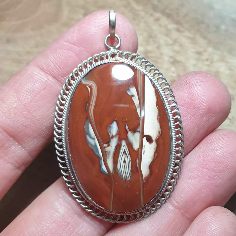 آویز نقره قواره دار مزین به عقیق سلیمانی سایز بزرگ
