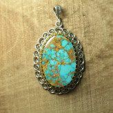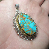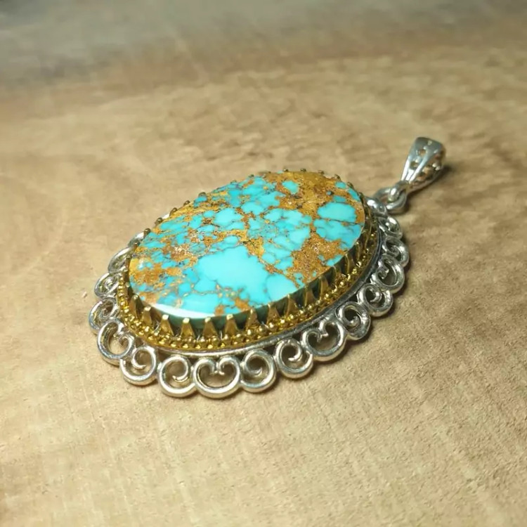 آویز نقره مزین به فیروزه نیشابوری رگه طلایی طبیعی