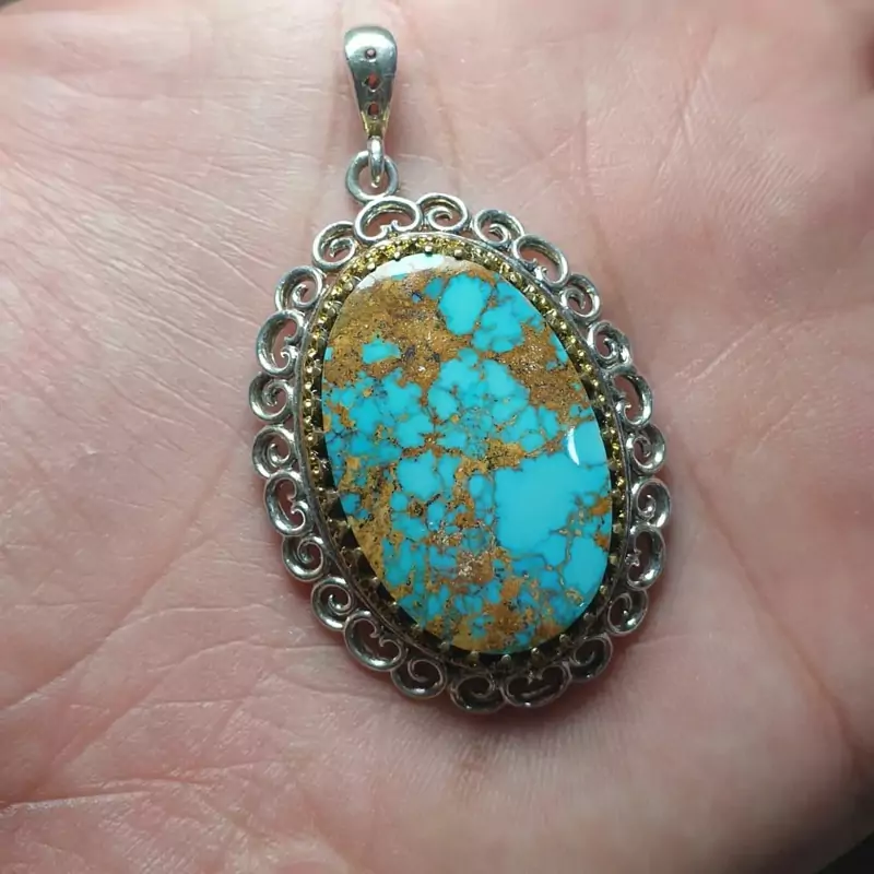 آویز نقره مزین به فیروزه نیشابوری رگه طلایی طبیعی